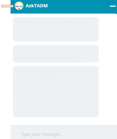 Click on the “Ask TADM” logo on the top left of the chatbot window if you need to reset.
