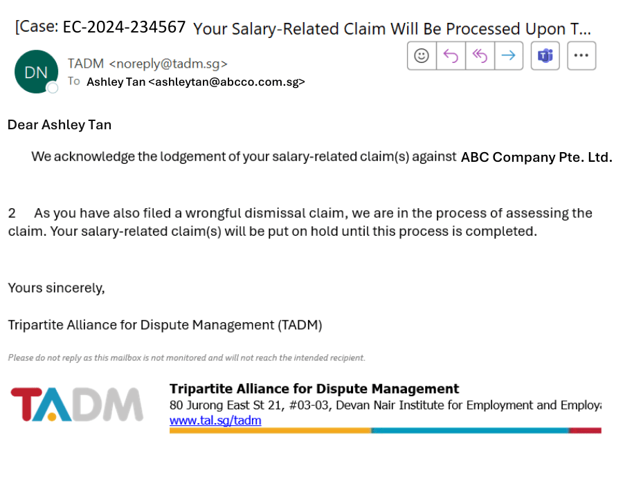 You may receive system notifications sent via SMSes and/or emails, with the sender reflected as “TADM” and “noreply@tadm.sg” respectively.
