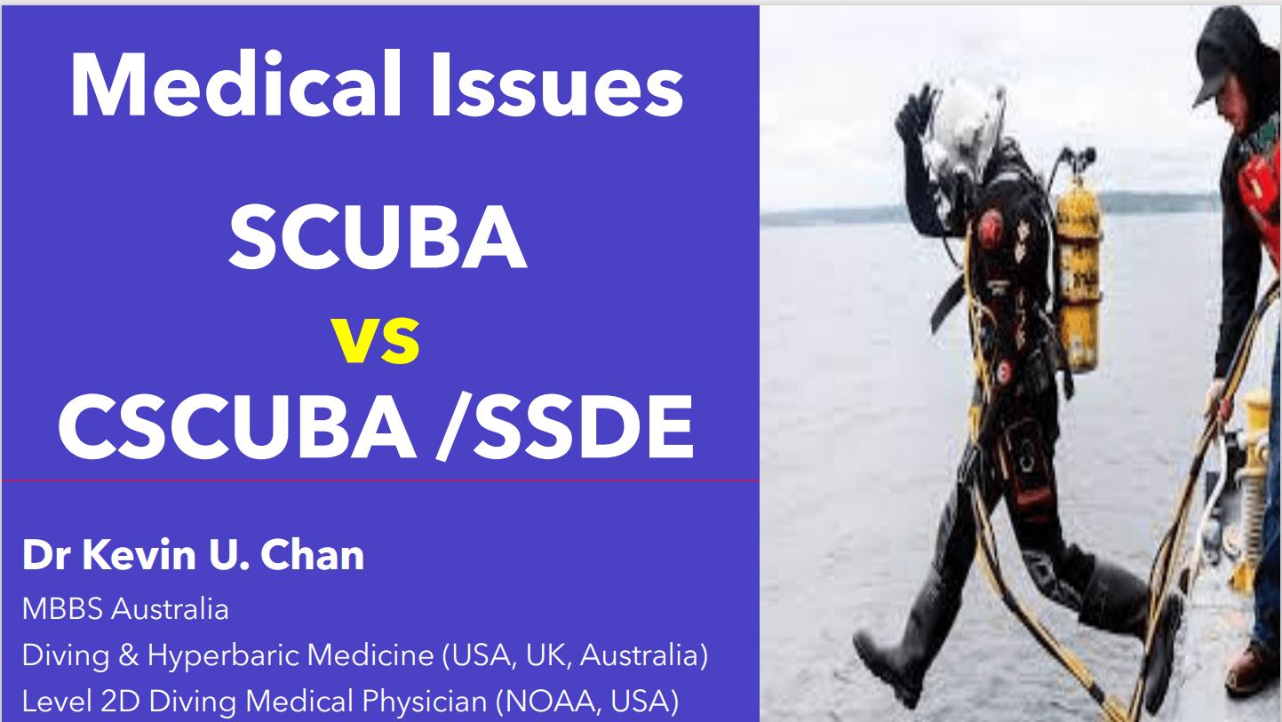shared the differences between Self Contained Underwater Breathing Apparatus and Surfaced Supplied Diving Equipment from a medical perspective.