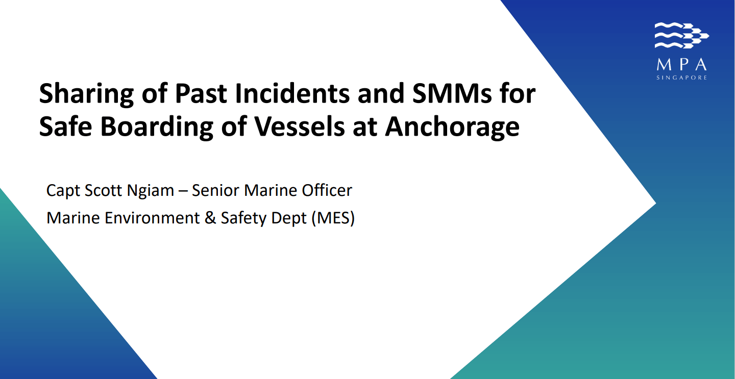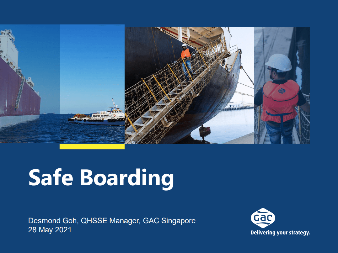 • A video showcasing WSH practices for safe boarding of vessels to be screened at