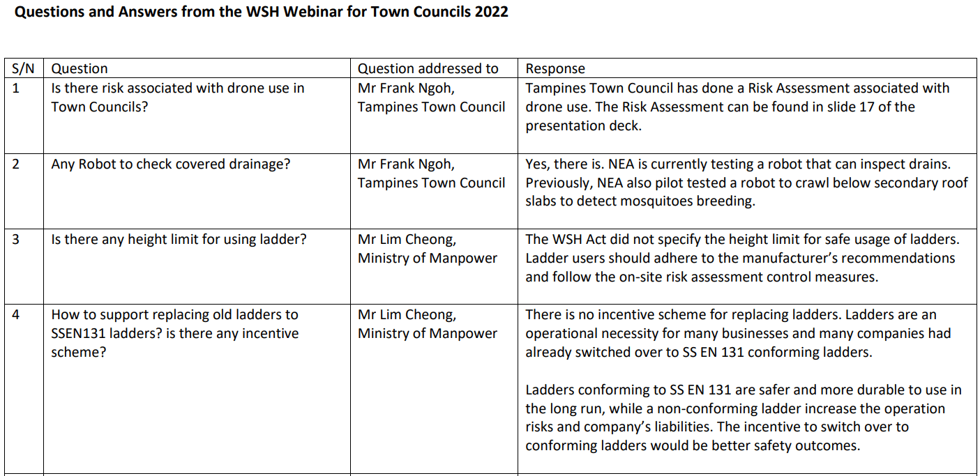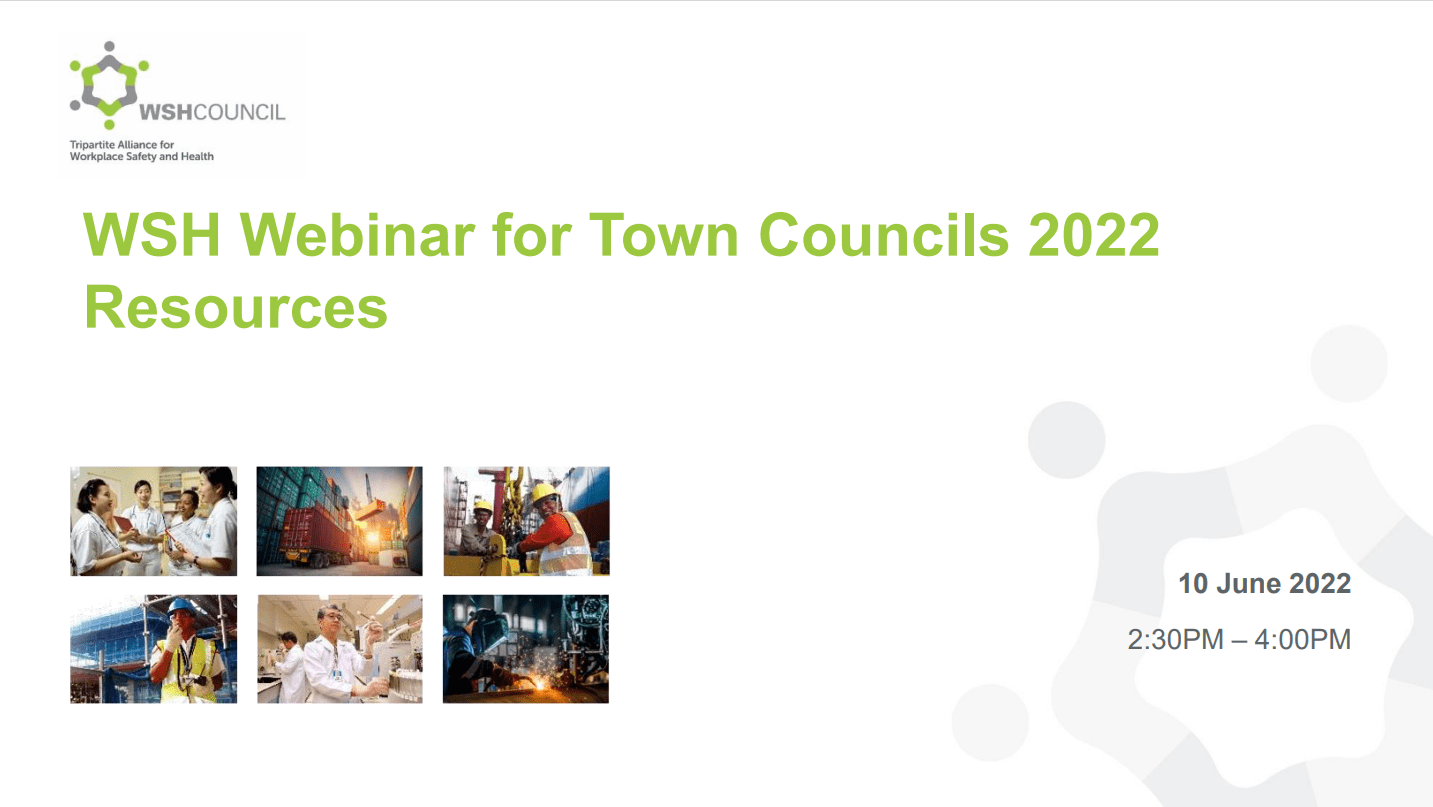 The WSH Webinar for Town Councils is the Workplace Safety and Health (WSH) Council’s annual engagement with Town Councils on the latest WSH developments affecting estates and township management. This year’s webinar placed greater emphasis on workers’ health and safety, and enhancing Fall from Height (FFH) and Slips, Trips & Falls (STF) prevention awareness.