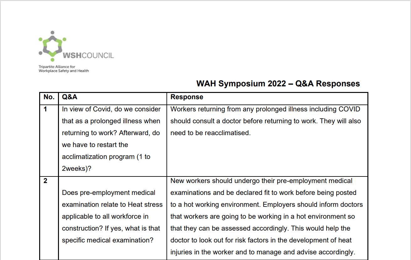 15 May 2024 Symposium Past Event Heat Stress , Mental Well-being , Total WSH , Work at Height Construction and Landscape