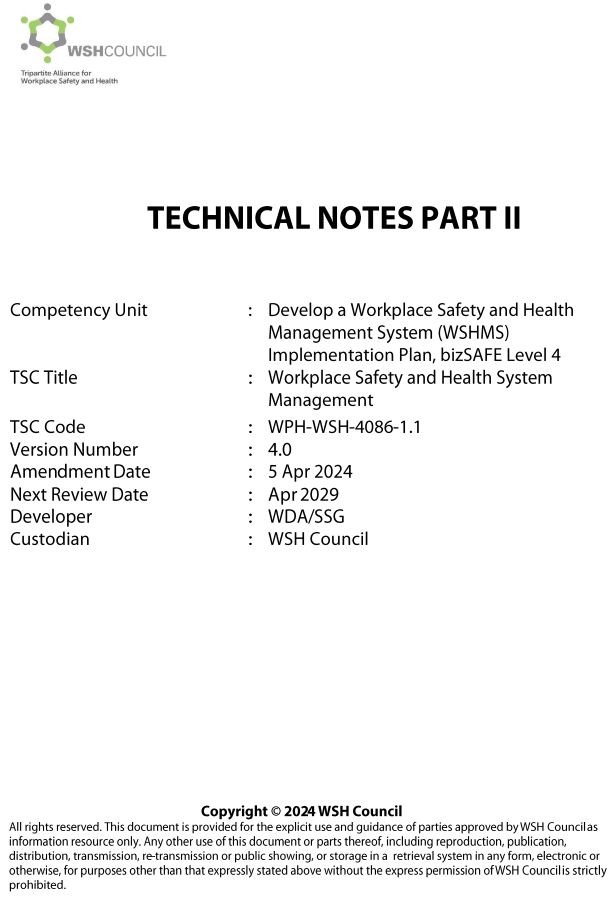 Though bizSAFE is structured as a 5-step programme, your company may apply for a level directly as long as it meets the level's requirements. We encourage companies to progress to bizSAFE Level 3 and above, which recognises that your company has conducted risk assessments for your workplace, in compliance with the requirements in the WSH (Risk Management) Regulations.
