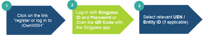 For business users, register or log in to iOwnWSH as an administrator with Singpass.