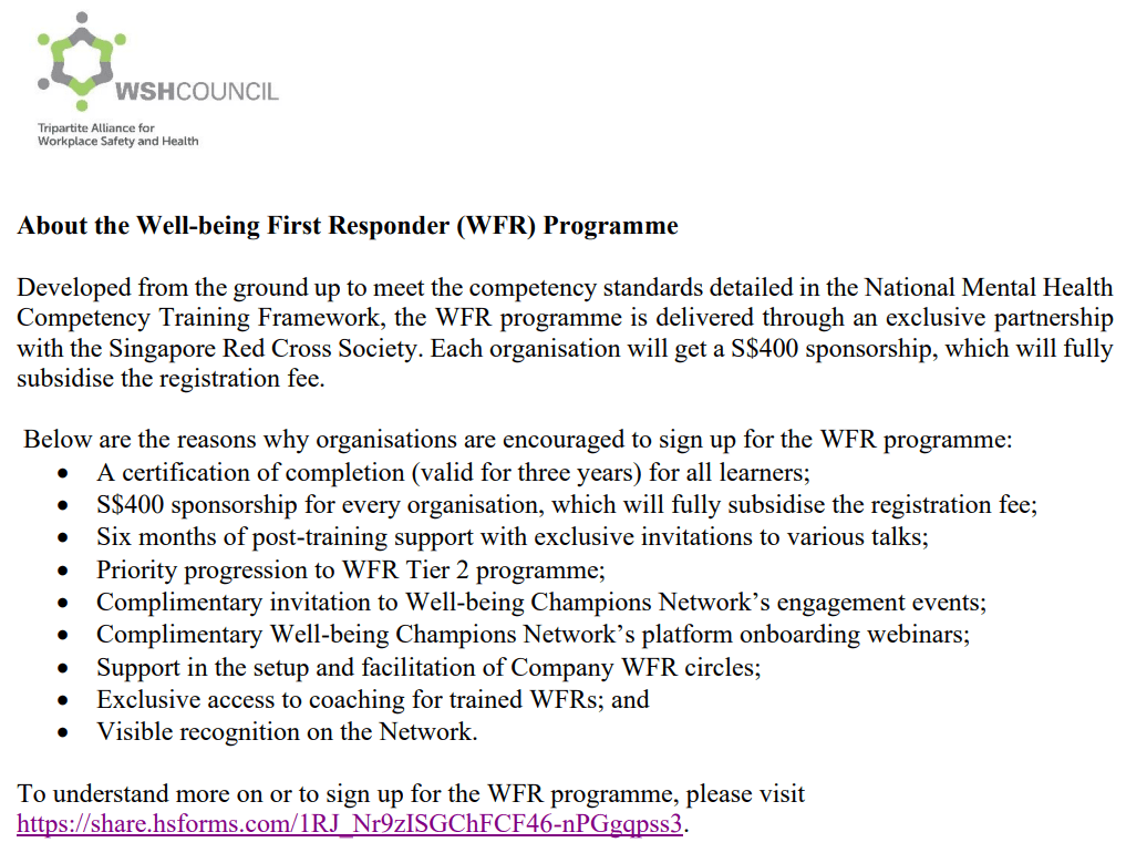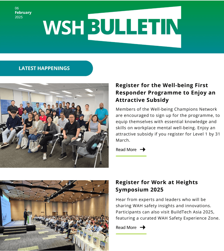The WSH Council has partnered insurer Singlife to offer eligible companies a 10% discount on the first-year premium under the MyBenefits Plus plan. See our Announcement for more details.