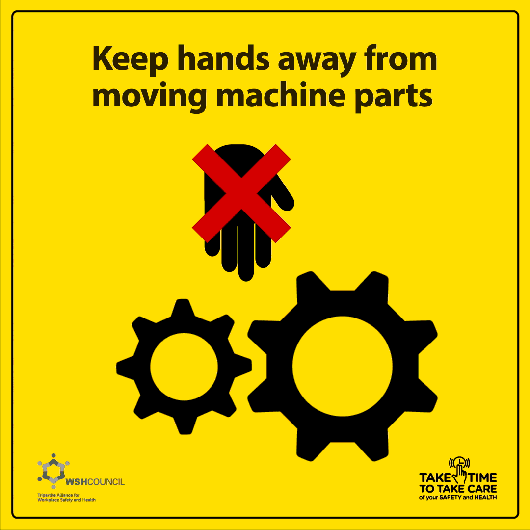 Keep hands away from moving machine parts