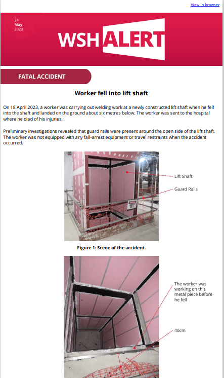 WSH Alert 24 May 2023 Worker fell into lift shaft