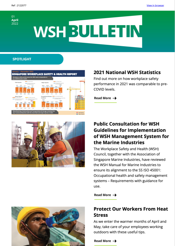 WSH Bulletin 1 Apr 2022 1 National WSH Stats 2 Public Consultation WSHMS Guidelines 3 Heat Stress
