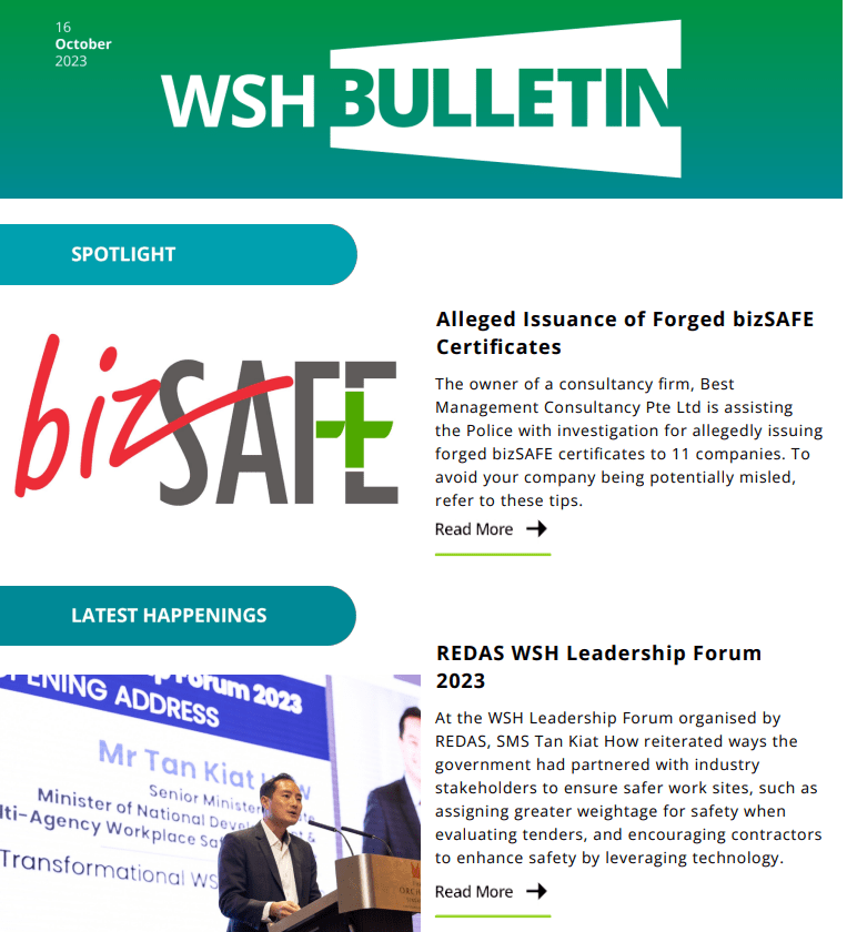 WSH Bulletin 16 Oct 2023 Alleged Issuance of Forged bizSAFE Certificates