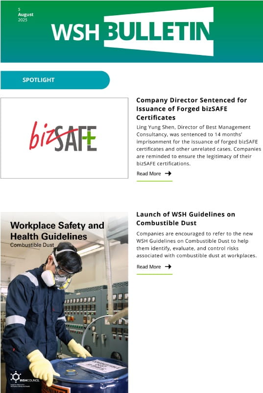 WSH Bulletin 5 August 2025 Company Director Sentenced for Issuance of Forged bizSAFE Certificates