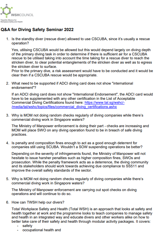 To know if the divers and/or diving supervisors possess recognised diving qualifications, check out the List of Acceptable Commercial Diving Certifications (PDF).