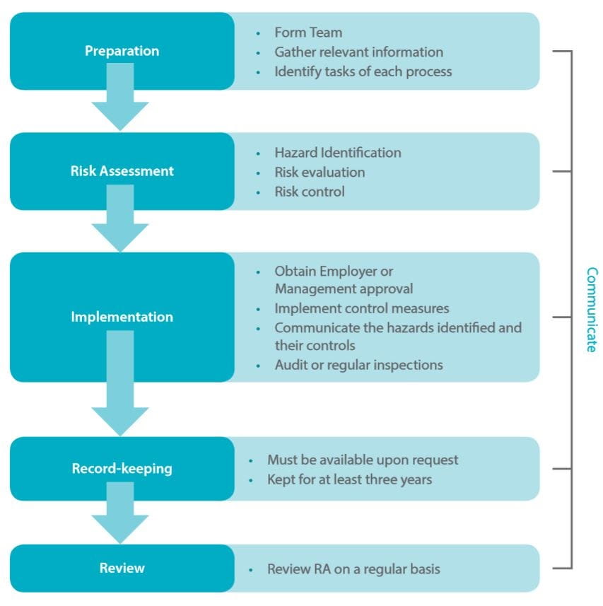All workplaces must conduct risk assessments for all work activities and processes under WSH (Risk Management) Regulations. These risk assessments must be reviewed as and when the work activities change or every 3 years, by law.